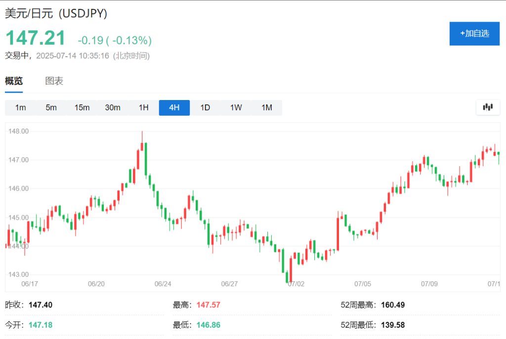 与此同时,美日贸易谈判的持续不确定性进一步施压日元。据新华社消息,特朗普宣布,将从8月1日起分别对来自日本、韩国等14个国家的进口产品征收25%至40%不等的关税。